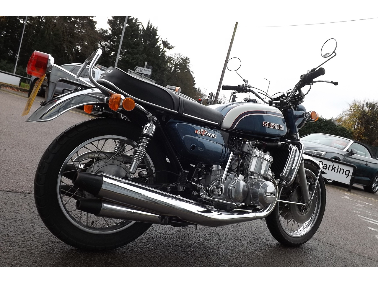 Here we have a beautiful and very original Suzuki GT750K that has just arrived in stock. Imported from the States by the previous owner back in June 2013 and lovingly (and sparingly) used over the past 12 years, we are now delighted to be able to offer it for sale to the next discerning owner. Being the rarer K model (only produced for one year) you get the better looking original designed bike with the benefit of a pair of disc brakes rather than the fearsom twin leading drum brake, making it an easy bike to ride in modern traffic. This K model series comes with the correct square headlight, footpegs, chrome horn, Mikuni carbs and most importantly the 3 into 4 exhaust with black cones making this a rare find. The owner has also just had the engine recommissioned at the cost of nearly £1400 and the bike runs and rides as sweet as the day it left the factory. Ride and enjoy as is or take it to the next level if so desired. We will fully safety check the bike prior to delivery but please feel free to get in touch to arrange your viewing and test drive in the meantime. You can contact us via this website, or email us, or instant chat us anytime. You can also reserve this vehicle right now for just £99. You can fill out the finance application online anytime and get an immediate answer day or night. Part exchange's are always welcome and we guarantee to pay more the WBAC. UK wide, home delivery is always available, or you can "click & collect" if you prefer. Please do ring ahead if you are travelling to see this vehicle and we will take it off sale whilst you travel so you don't have a wasted journey. We have been selling quality New & Used vehicles for over 22 years with more than 13,0000 satisfied customers across the length and breadth of the UK. Please feel free to read our reviews and see what our lovely customers really think of us. If this is the car for you then we look forward to hearing from you and helping you achieve your Motoring goal. Should it not be quite what you are looking for then please get in touch and put us to the task of sourcing you your ideal vehicle, we have many contacts across the trade and can usually find a particular vehicle you require in a reasonable amount of time.
